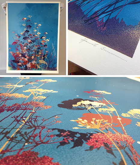 Hemlock Blue in the flesh, the first thing that grabs you is the intense and just truly stunning blue that radiates from the surface of the paper. With an impressive 20 layers of colours, this print - the first this year for Simonsen - is proof that this artist's works seems to just be getting better with every piece.