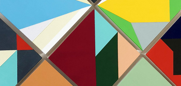 Pursuing this new direction away from the digital medium and towards more hands-on crafts, 2018 certainly saw an important shift in Holden’s practice. Creating his own bespoke interlocking panels, and breaking down his imagery more than ever before to even simpler representations of colour, Holden released his first painted artworks with Eyestorm that year. As individual pieces the paintings are much simpler than Holden’s screen-prints, however when put together, they have the same mesmerizing visual impact. Uniquely, the paintings exist as both individual artworks, or as any number of interlocking panels, which combine in seemingly infinite variations with the potential to become much larger, more complex pieces.