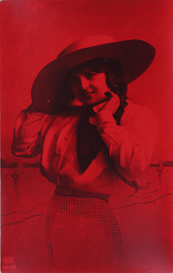 Victorian Postcard Series 1 sees the subject posing in a large brimmed hat and the photograph seems to stop at her waist. To avoid her looking like she’s been decapitated, her body from the waist down appears to have been drawn into the image to create a skirt, along with the background to make her look as if she’s standing on a beach. The drawing was done onto the postcard after the photograph was printed, which gives us an interesting insight into the creative processes that were around at the time. This postcard could have been sent from someone’s holiday by the sea, and so they drew in the landscape to give it more of a context. Why the bottom half of the woman was missing I’m unsure; the Victorians were known to ‘adapt’ photographs on occasions, either by tinting them to add colour, or by scratching away at the image to remove parts of it they didn’t want to appear in the picture.
