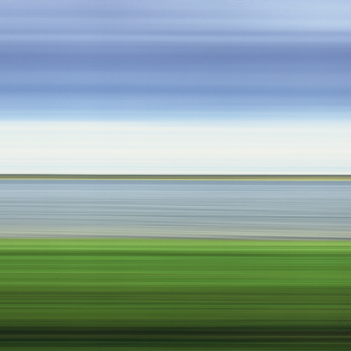 Rob Carter's photographs play with senses of perception. Transfixing horizontal lines of colour, like rock strata or layers of the atmosphere, give the illusion of a moving image, as if taken from the side window of a driving vehicle. They are in fact stills, taken using a revolving-lens camera that stretch the 'moment' both literally - in that the camera shutter is held open - and visually, as the details of the subject blur out horizontally.